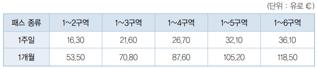 - 1일 패스는 12유로, 2일 패스는 14유로다.