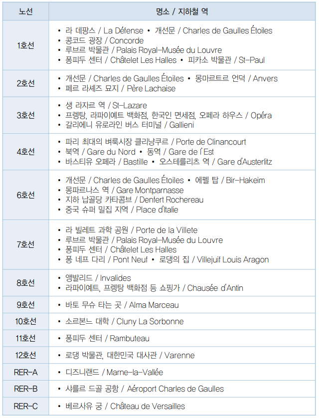 파리 지하철 노선별 주요 볼거리