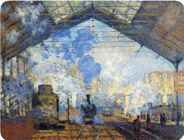인상주의라는 사조는 미술작품만의 문제가 아니었다. 인상주의를 보다 풍부하게 이해하려면 당시 산업화의 상징인 철도, 사진술의 발달, 그리고 부르주아 층의 확산과 이로 인한 도시화 문제 등 문명사적 변화들을 종합적으로 고려해야 한다. 기차가 없었다면 인상주의 화가들은 감히 북프랑스의 바다나 파리 교외의 강가로 나갈 엄두를 내지 못했을 것이다. 이런 물리적 이유에 덧붙여 인상주의 화가들이 즐겨 다루었던 철교와 기차가 등장하는 그림들은 풍경화에 새로운 구도를 도입했다. 하지만 철도가 끼친 가장 의미있는 영향은 차창을 흘러가는 풍경, 다시 말해 공간과 시간의 인위적인 만남이 허락하는 풍경에 대한 독특한 감각이었다.
