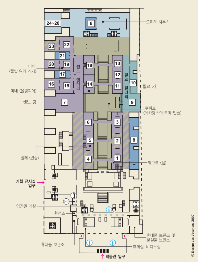 교통편 : 지하철 M12 Solfe'rino 혹은 RER-C Muse'e d’Orsay 역, 버스 24, 63, 68, 73, 83, 84, 94번