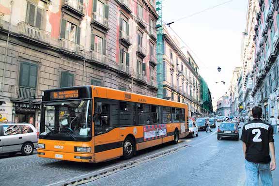 나폴리의 버스 노선은 수시로 바뀌며 새로운 노선이 생기기도 하고 없어지기도 하기 때문에 유의할 필요가 있다. 도착하자마자 관광안내소에서 가장 최근의 노선도를 얻어야 한다. 또한 대부분의 노선들이 순환선이므로 유의하도록 한다. 가리발디 광장과 무니치피오 광장을 지나는 R2, 나폴리 고고학 박물관을 연결하는 R4 등이 관광객에게 유용한 주요 노선이다. 이외에 비토리아 광장Piazza Vittoria과 메르겔리나Mergellina를 잇는 C24, 보비오 광장Piazza Bovio, 산타 루치아 가Via Santa Lucia를 연결하는 C25 등도 유용하다.