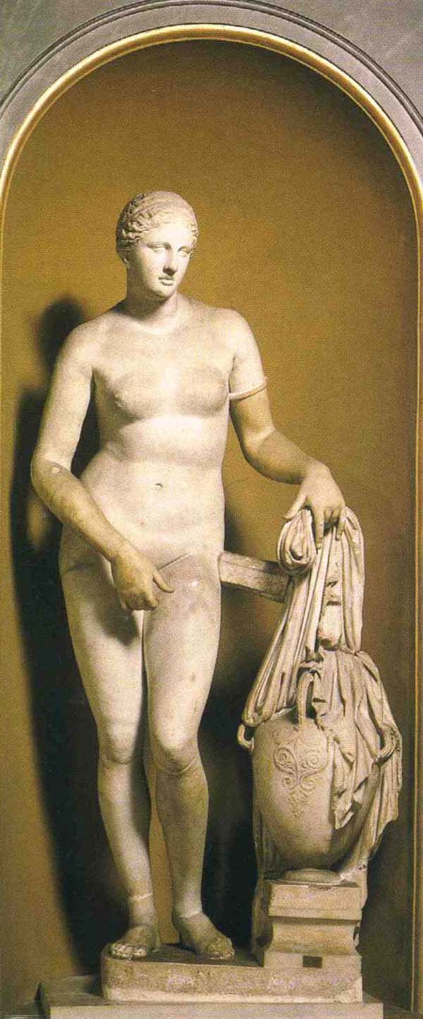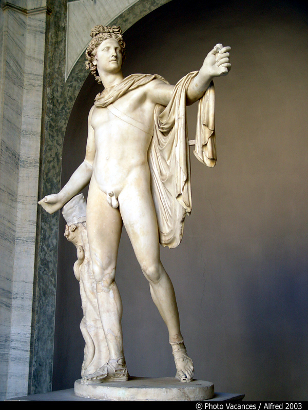 흔히 벨베데레의 아폴론으로 불리는 이 유명한 조각은 기원전 4세기에 활동했던 그리스 청동 조각가 레오카레스의 작품을 서기 2세기경 로마 조각가가 모각한 것이다. 판테온에서 부조 작품들이 발견되기 전에는 오리지널 작품으로 간주될 정도로 뛰어난 미학적 완성도를 보여준다. 과장되지 않은 인체 묘사에서 풍겨 나오는 은밀하고도 육감적인 매력이 이 작품을 그리스 조각의 걸작으로 꼽게 한다.