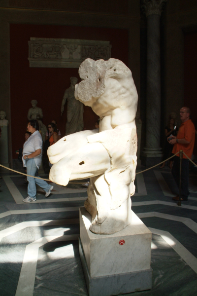 유명한 <벨베데레의 토르소>가 있는 방이다. 미켈란젤로의 찬탄을 자아냈던 팔과 다리 일부가 잘려나간 이 흉상은 헤라클레스를 조각한 것으로 추정되었지만, 최근 들어, 트로이 전쟁의 영웅으로 친구인 아킬레스의 시신을 거둔 용감한 무장 아이아스로 판명되었다. 아이아스는 너무나 전투에 몰두한 나머지 양떼를 적으로 오인하고 몰살해 버린다. 이를 안 아이아스는 수치심에 사로잡혀 그만 목숨을 끊고 만다. 두 다리의 상반부와 가슴만 남아 있음에도 불구하고 이 작품은 수치심에 사로잡힌 영웅의 뒤틀린 몸을 연상하게 한다. 오히려 잘려나간 부분으로 인해 더욱 극적인 표현을 얻고 있다.