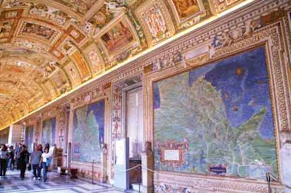 고지도를 모아놓은 이 방에는 16세기 때 매너리스트 화가들에 의해 장식된 멋진 지붕이 있다. 천장에는 80개의 일화들이 성자들을 묘사하고 있고 벽에는 이탈리아를 두 부분으로 나뉘어 40개의 지도에 각 유명 도시 등을 3년에 걸쳐 그려 넣었다.