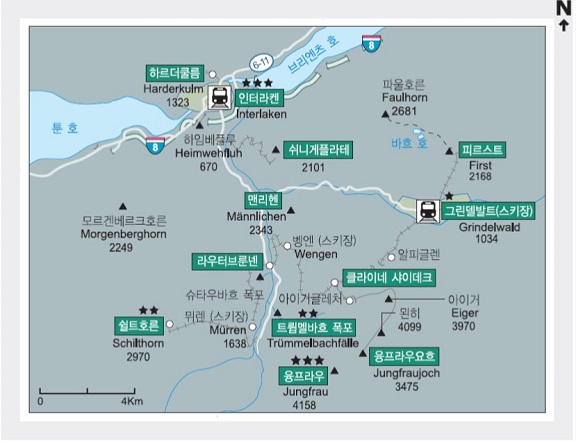 오랜 기간 동안 5천 명의 인구를 계속 유지하고 있는 작은 도시 인터라켄은 말 그대로 툰 호수와 브리엔츠 호수,‘ 두 개의 호수 사이’에 있는 마을이다. 베른에서 남동쪽으로 약 26km 정도 떨어져 있다. 베른 알프스 산맥(독일어로는 베르너 오버란트Berner Oberland)의 고산준령에 둘러싸인 스위스 최대 관광 요지 중 한 곳이다.