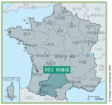 이루고 있는 미디 피레네 주이다. 주청 소재지는 유럽 항공우주 산업의 메카인 툴루즈다. 아리에주, 아베롱, 타른, 타른 에 가론느, 오트 가론느, 제르, 로트, 오트 피레네 등이 미디 피레네 주 산하의 도이다.