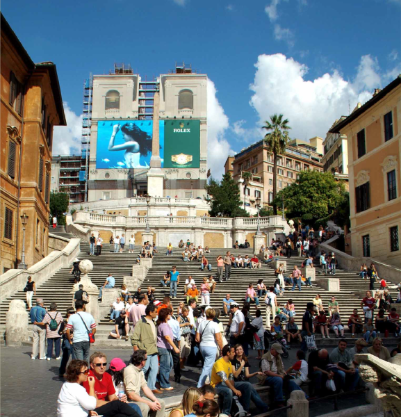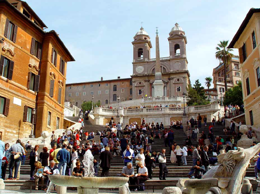 스페인 광장은 로마에서 가장 ‘물 좋은’ 광장이다. 로마 멋쟁이 젊은이들의 약속 장소일 뿐 아니라 로마를 찾은 세계 각국의 관광객이 가방 놓고 제일 먼저 달려와 로마의 ‘오늘’을 즐긴다. 언덕 위로 이어진 137개의 계단에 바글바글 앉아 있는 사람들은 마치 ‘로마’ 라는 공연을 보러 모여든 관객 같다.