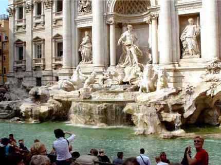 트레비 광장은 로마 최고의 ‘부자’ 광장이다. 관광객들이 쉴 새 없이 동전을 던지는 트레비 분수가 바로 이 곳에 있기 때문. 좁다란 골목을 지나 갑자기 나타나는 트레비 분수는 로마에서 가장 아름다운 분수이기도 하다. 분수, 사람 구경에 동전 구경까지 하다 보면 시간 가는 줄 모르고 오래 머물게 되는 곳이다. 구경하는 재미에 빠져 로마를 여행하는 동안 매일 이곳을 찾는 관광객도 많다.