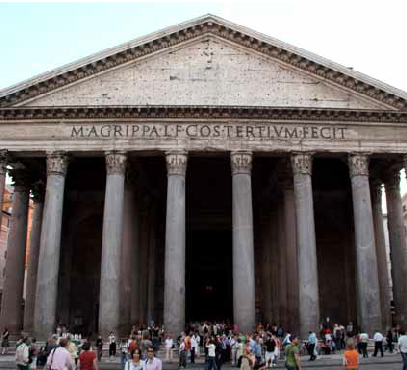 지어진 지 2000년 된 판테온은 원래는 이교도의 신전이었으나 중세에 들어 성당으로 사용되기 시작했다. 높이와 돔의 지름이 똑같이 43.3m 로 설계된 건물은 놀라운 균형감각을 보여준다. 중앙 돔 한 가운데 뚫린 구멍으로 들어오는 햇빛을 보지 못하면 로마를 보지 못한 것이나 다름 없다. 이 성당에는 라파엘로의 묘가 있다.