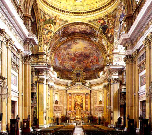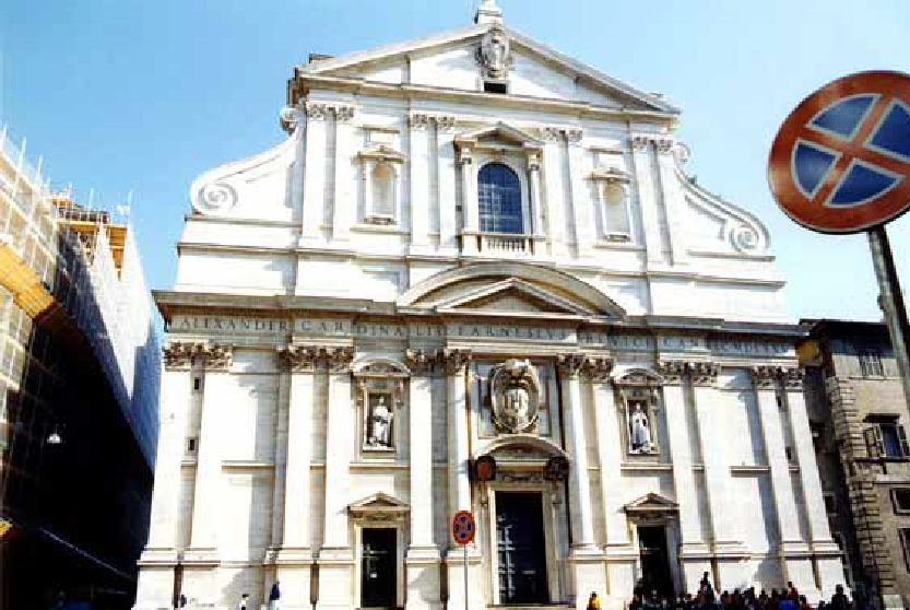 가톨릭의 한 교파인 예수회 로마 본당이다. 16세기 말, 종교개혁에 반대해 가톨릭을 옹호하기 위해 지어진 이 건물은 이후 유럽에 건축되는 성당의 모델 역할을 하게 된다. 신교는 지옥으로, 구교는 천당으로라는 이분법이 지배하는 실내 벽화 등이 이채롭다. 베르니니가 조각한 산 로베르토 벨라르미노의 조각상은 마치 살아있는 성 자를 대하는 듯한 착각을 불러일으킨다.
