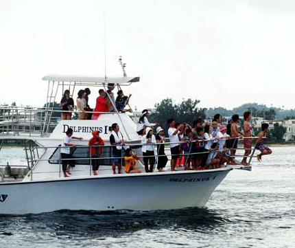 아가나 만에서 시작하여 약 15명 정도서 한 보트에 타고 인근 바다로 가서 돌고래를 구경할 수