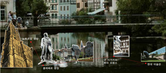 있다. 명품 상점부터 아기자기한 소규모 상점, 대형 슈퍼마켓 등이 곳곳에 자리해 있다. 구시가지와 쁘띠 프랑스에서는 알자스 지방 특유의 풍경들과 만날 수 있는 곳. 일 강을 사이에 두고 그 건너편에 자리한 건물은 현대 미술관이다. 한가롭게 전시를 감상하며 스트라스부르에서의 일정을 마무리하면 어떨까?