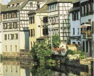 벽의 기둥들을 외부로 노출시킨 전형적인 알자스 식 가옥들로 이루어진 구시가지는 두 개의 마을로 이루어져 있다. 대성당 광장 인근에 있는 두 채의 집이 특히 눈여겨볼 만하다. 그 중 한 집이 프랑스에서 가장 오래된 약국인데 1268년에 문을 열었다고 한다. 북쪽 모퉁이에 있는 카메르젤Kammerzell의 집은 집이라기보다는 나무로 조각을 한 목각 같은 집이다. 구시가지와 인접해 있는 ‘쁘띠 프랑스’는 스트라스부르의 구시가지 중 가장 잘 보존된 지역이다. 어부들과 가죽 장인들이 살던 동네였는데, 건물 밖으로 돌출된 발코니가 특징인 16, 17세기 가옥들이 그대로 보존되어 있다. 원래 돌출 발코니는 루이 14 세 당시 금지되어 있어서 지을 수가 없었다. 일 강에 비친 이 작은 마을의 모습은 아름답기 그지없다.