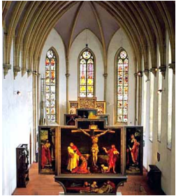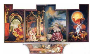 독일 화가 마티스 그뤼네발트Gr?newald(1475~1528)가 수도원의 초청을 받아 1512년에서 1516년 동안 그린 제단화이다. 현재는 전시때문에 분리되어 각각 다른 방에서 전시하고 있지만 원래는 접을 수 있도록 된 액자에 그려 넣은 것으로 10점의 그림들이 모여 구성되는 전체를 감상해야 한다. 모두 목판 패널에 유채로 그린 그림들이다. 이젠하임은 콜마르에서 남쪽으로 22km 떨어진 마을로 14세기 초 안토니우스 파 수도사들이 수도원과 병원을 짓고 수도와 간병을 동시에 하던 곳이다. 이젠하임 제단화에 성 안토니우스가 자주 등장하는 것은 이런 이유 때문이다. 성 안토니우스는 4세기 초 재산을 모두 분배하고 사막에서 홀로 수도했던 은자였다. 수도 중 환상 속에서 악마들의 유혹을 받았다는 전설이 전해져 플로베르 등 많은 시인 극작가들이 그를 주인공으로 작품을 썼고 또 화가들도 많은 그림을 그렸다. 폴 세잔느, 스페인 출신의 살바도르 달리 같은 현대 예술가들의 작품 중 에도 이를 소재로 한 그림이 많다.