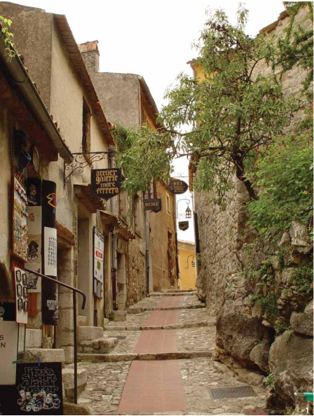 인구 3,100여 명의 에즈는 해발 400m 이상의 깎아지른 절벽 위에 있다. 에즈 빌라주, 에즈 계곡, 라 르베르