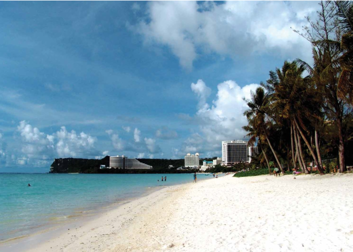 산호초로 이루어진 태평양 서쪽에 있는 섬나라인 괌은 미국령이다. 괌의 해변은 수심이 얕고 조수가 낮아서 해수욕을 즐기기에 최적의 장소이고, 특히 산호초가 다 비칠 정도의 투명도를 자랑한다. 에메랄드 빛 바다 너머로는 쪽빛 바다가 이어지는데 이 곳은 수심이 매우 깊다. 한국에서 불과 4시간 거리 에 있지만, 단정하고 깨끗한 해변과 물색은 동남아의 해변과는 또 다른 느낌이다. 아름다운 괌의 물빛을 즐길 수 있는 아름다운 해변들을 찾아가 보자.