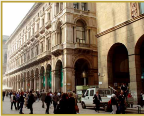 밀라노 패션의 중심 ‘콰드릴라테로 지구’에는 유명 브랜드 매장부터 톡톡 튀는 아이디어가 돋보이는 젊은 디자이너 숍에 이르기까지 다양한 부티크가 많다. 이 지역은 산 바빌라 광장Piazza San Babila을 배경으로 몬테나폴레오네 가Via Monte Napoleone, 만초니 가Via Manzoni, 델라스피자 가Via della Spiga, 산안드레아 가Via S.Andrea로 둘러싸여 있다. 콰드릴라테로 지구와 두오모 성당 사이는 밀라노에서 가장 부동산 가격이 높아 우리나라의 명동 같은 지역이다. 비토리오 에마누엘레 2세 갈레리아는 주세페 멘고니가 설계한 아름다운 아케이드이다. 유명 브랜드 매장이 즐비한 화려한 쇼핑가이지만 관광객 뿐만 아니라 밀라노 시민들이 커피를 마시고 대화를 나누는 장소이다.