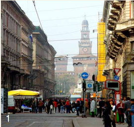 이탈리아의 시인 단테의 이름을 딴 거리를 거닐며 이들의 숨결을 느껴본다. 밀라노의 중심지 단테 가에는 유명한 교통수단인 주황색 트램이 지나다닌다. 마임, 바이올린 연주 등을 하는 거리 예술가를 거리 이곳저곳에서 볼 수 있다. 관광객과 사진 촬영을 하는 데에도 익숙해서 동전 한두 개면 즐거운 추억을 만들 수 있다. 저녁이 되면 노천카페에는 하나둘씩 불이 켜지고 모여든 밀라노 시민들로 꽉 찬다.