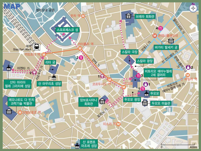 안에 주요 명소를 볼 수 있다. 밀라노의 물가를 고려해서 택시로 이동하는 코스는