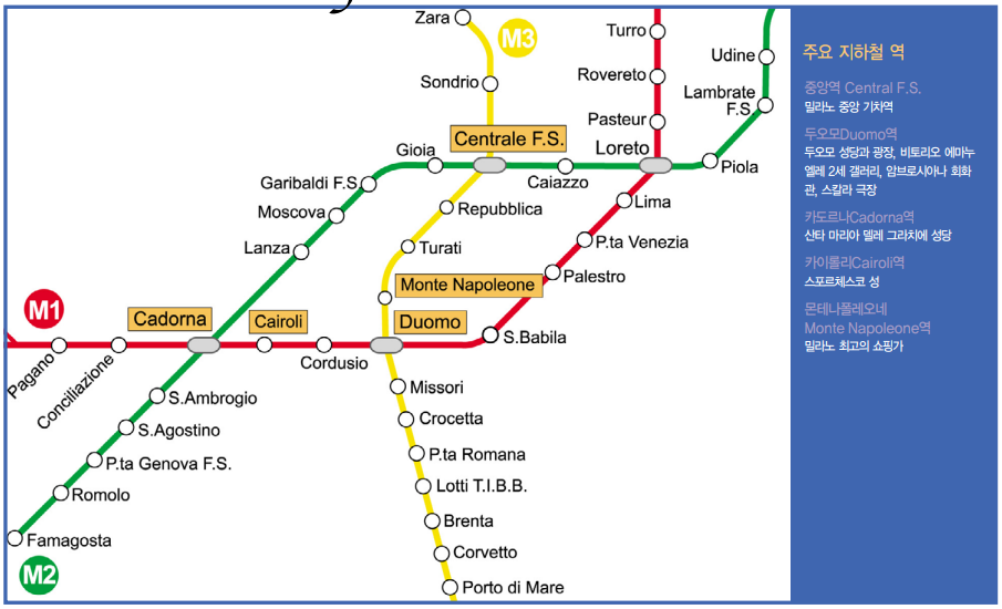 - 교통편 지하철 1호선 Cairoli역, 2호선 Lanza역